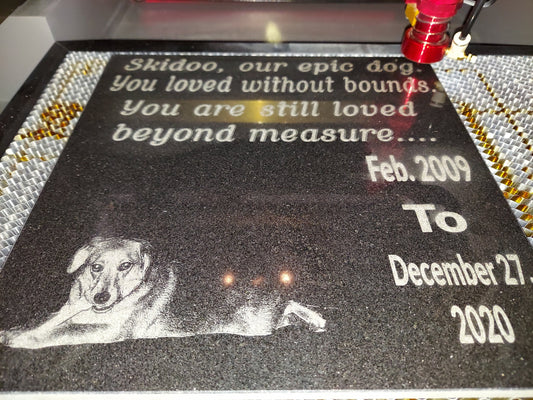 Granite Pet Memorial 12x12 Absolute Black Granite Tile Custom Engraved. Made in the USA