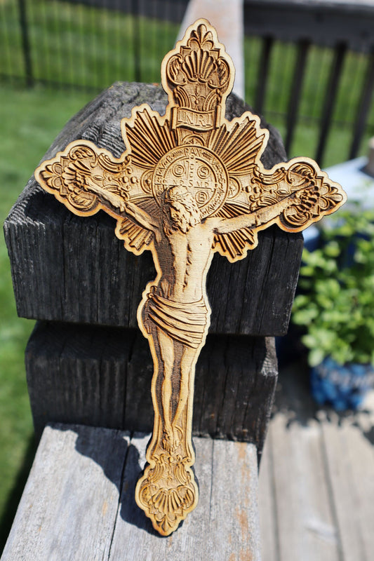 Greek Style Ornate Cross with Jesus - Laser Engraved Wall Art/Wall Decor